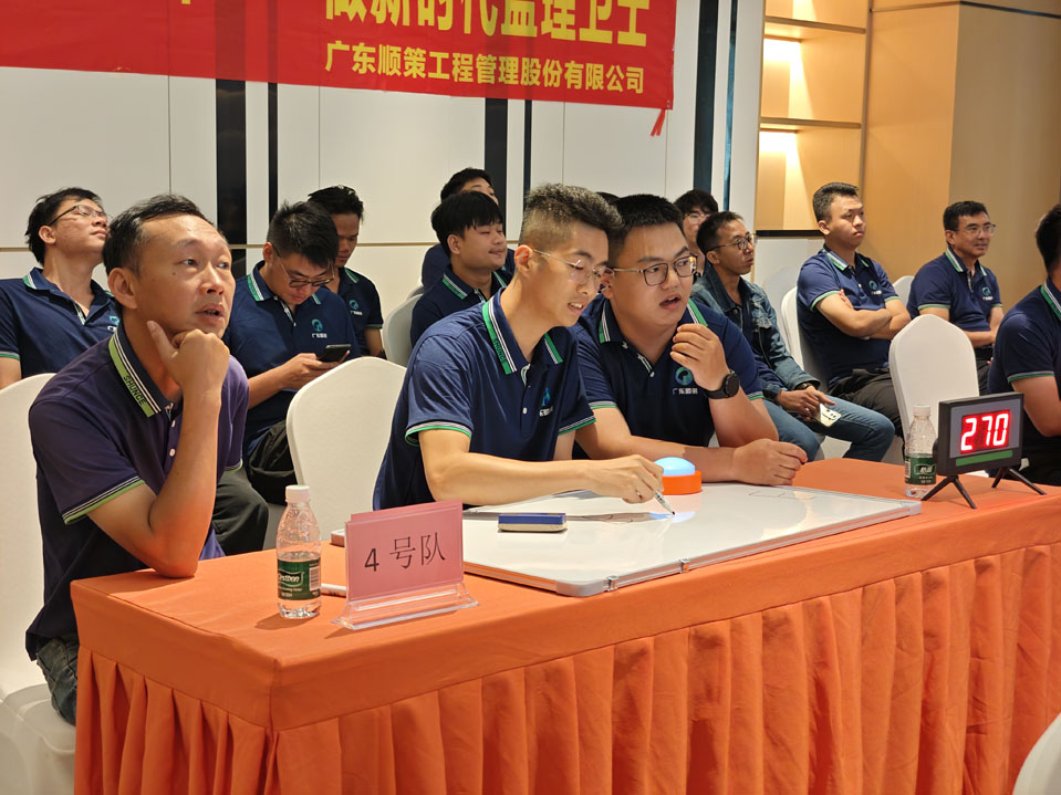 初赛分两轮进行,每轮 4 支队伍同场竞技,涵盖必答、抢答等环节,内容聚焦房屋建筑工程质量安全相关法律法规、规范标准及近五年行业文件时事等。比赛现场,各队伍聚精会神讨论策略,在答案板上沉稳书写答案,展现出扎实的专业功底。5 位评委对选手回答逐一细致点评,既肯定亮点,也指出知识盲区,让比赛兼具竞技性与学习性。